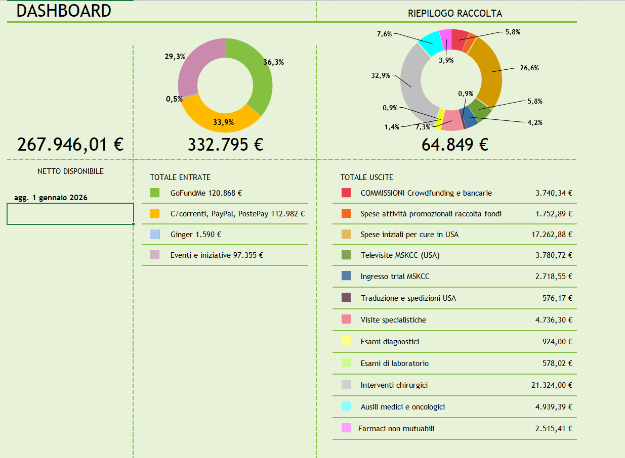 Bilancio Fondi – AGG. 1 gennaio 2026 –> vedi grafico di sintesiGoFundMe 120.868 euro